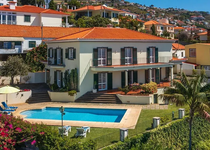 Ourmadeira - Villa Vista Sol, Grand Traditional ligger i Sao Goncalo område, cirka 2 km fra Palheiro Golfklub og byder på en swimmingpool. Denne indkvartering er udstyret med 5 værelser, et udstyret køkken og 5 badeværelser.